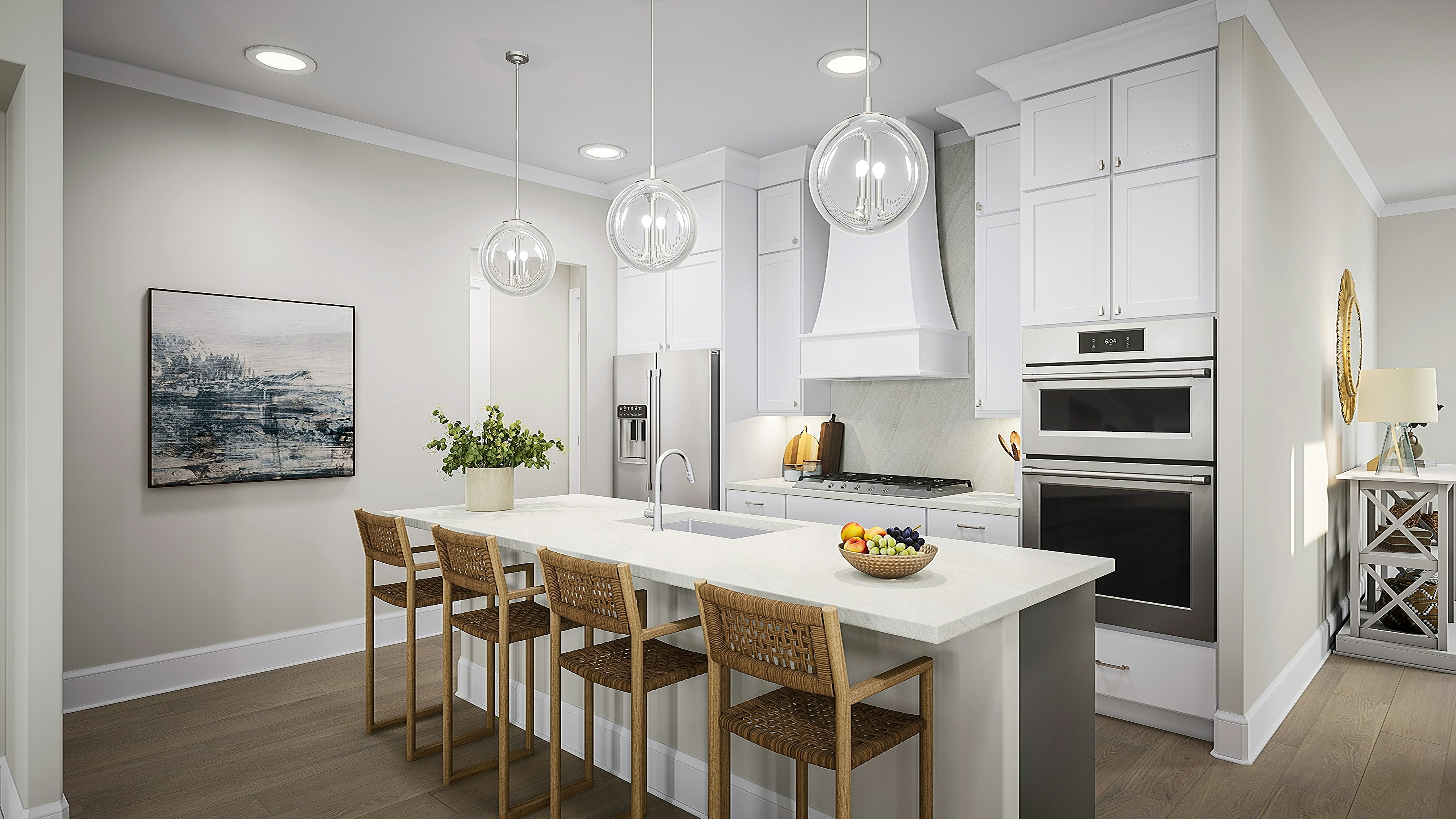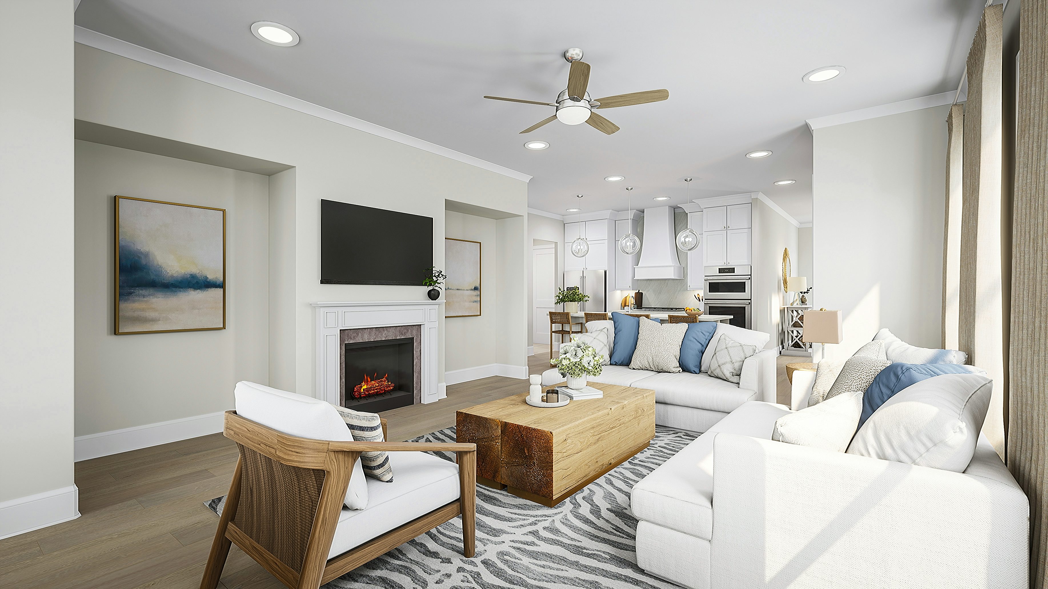 The Whitmore at Legacy Downs blends elegance and versatility in a spacious two-story design offering 4 to 5 bedrooms, 3.5 baths, and up to 3,200 square feet of living space. The main level features an open-concept layout with a gourmet island kitchen, dining area, and great room with a cozy fireplace—perfect for gathering and entertaining. The private first-floor primary suite offers a spa-like bath with a standing tub, walk-in shower, and generous walk-in closet, while a covered patio or optional sunroom extends your living space outdoors.