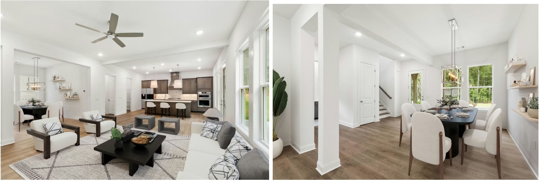 The Chatham offers 5 bedrooms and 4 full bathrooms in more than 2800 square feet of living space. Step onto the welcoming front porch and into the foyer which unfolds into a bright, modern living space just beyond with a gracious dining room and inviting fireside great room overlooking the gourmet-appointed island kitchen, perfect for entertaining and everyday. Easy connection to the rear covered patio seamlessly blends indoor and outdoor living, while a comfortable first floor guest suite offers both privacy and convenience or doubles as a study or home office.
